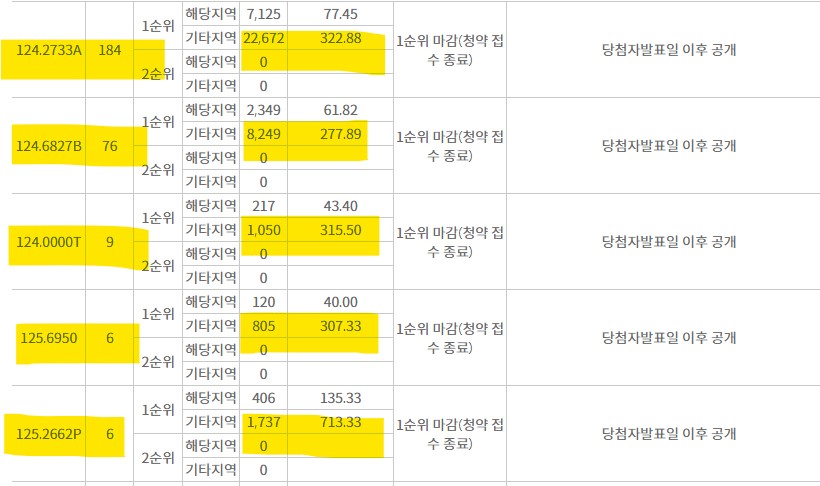 124 타입과 125 타입은 무난한 경쟁률을 기록하였다. 많은 분들의 관심을 받았던 101 타입에 비해서는 높은 당첨확률 기록하였다.