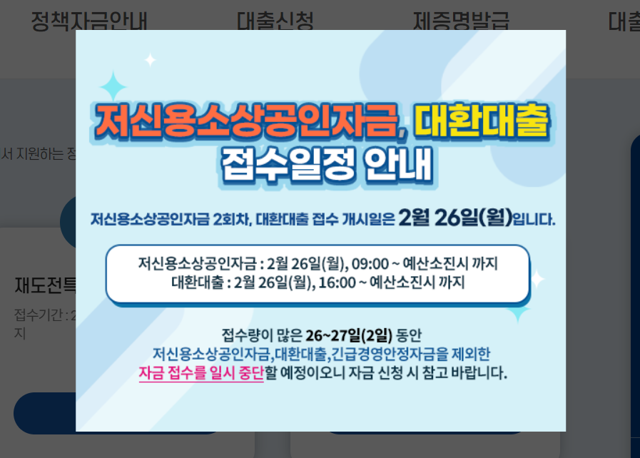 카테고리 없음 소상공인정책자금.kr by 청약알리미 2024. 2. 25. 소상공인정책자금.kr 저신용소상공인자금 2회차, 대환대출 접수 2월 26일부터 시작됩니다. 예산 소진 시 조기 마감 되오니 이 점을 유의하시길 바랍니다. 공유하기 게시글 관리 부동산알리미 저작자표시 비영리 변경금지 (새창열림) > 댓글